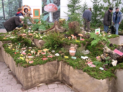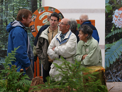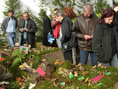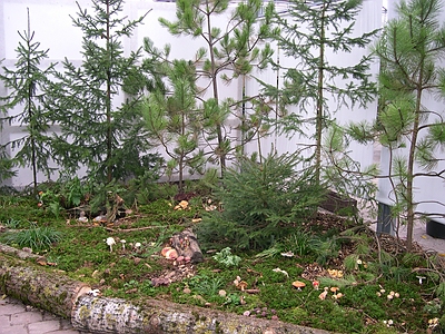 | Bild 3: Im nachgestellten Laubwald zeigten wir den Besuchern typische Pilze dieses Biotops | Bild 4: Schräg gegenüber fanden die Pilzfreunde ein Stück Nadelwald mit zugehöriger Pilzflora. |
