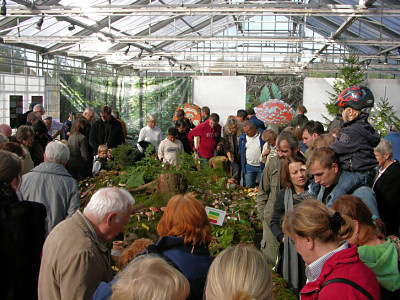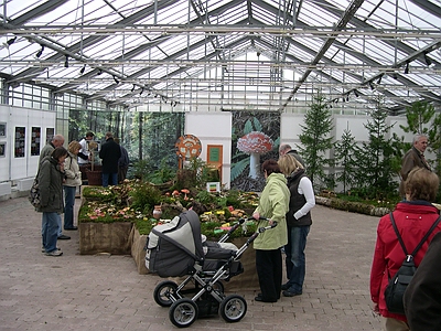 | Bild 1: Zahlreiche Besucher nutzten die Ausstellung, um ihr Wissen über das Reich der Pilze aufzufrischen. | Bild 2: Die Frischpilzausstellung fand im Überwinterungshaus des Botanischen Gartens Augsburg statt. |