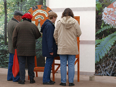 | Bild 19 (von links): Roswitha Esterlechner, Kurt Köhler und Fritz Frank holen Luft vor der nächsten Diskussionsrunde. | Bild 20: Spielerisch lernten neben den Kindern auch Erwachsene allerhand Neues über das Reich der Pilze. |