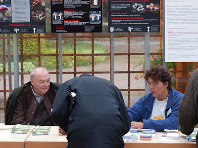 Gleich am Eingang konnten Interessierte für einen kleinen Obolus unsere hauseigene Infobroschüre mit den wichtigsten Verwechslungsmöglichkeiten und leckeren Pilzrezepten erstehen. Dr. Alfred Mayer und Dr. Birgit Weisel gaben bereitwillig Auskünfte über die Welt der Pilze.