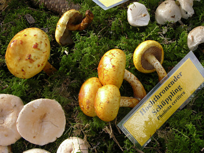 Eine der Hauptattraktionen war der Giftpilzkarren. Dort bekamen die Besucher Arten zu Gesicht, die beim Verzehr starke Übelkeit hervorrufen und unbehandelt sogar zum Tod durch Organversagen führen. Besonders interessiert war das Publikum an der Abwehrreaktion des Immunsystems nach dem wiederholten Verspeisen des Kahlen Kremplings (Paxillus involutus). Dies kann zu einer lebensbedrohlichen Zerstörung der Roten Blutkörperchen führen. Fatal: Die Art galt früher als essbar und wurde als "Speckpilz" auf dem Markt angeboten – wer ein altes Pilzbuch nutzt, hat schlechte Karten.