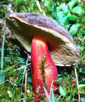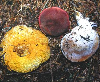 Giftige Schimmelpilze, Bakterien und toxische Stoffe, die bei der Eiweißzersetzung entstehen, bilden die Ursachen für viele "unechte Pilzvergiftungen", die man besser unter dem Begriff Lebensmittelvergiftung zusammenfaßt. Die sogenannten Großpilze, also auch unsere Speisepilze sind besonders schnell verderbliche Organismen. Ihr Zersetzungsprozeß tritt vor allem bei alten und von Maden befallenen Fruchtkörpern sehr schnell ein und wird durch falschen Transport, z.B. in Plastiktüten, und unsachgemäße Lagerung, ungekühlt oder/und in geschlossenen Behältnissen, noch beschleunigt. Die zur Untergattung "Filzröhrlinge" (Xerocomus) zählenden Pilze, hier vor allem die zahlreich gesammelten Rotfußröhrlinge (Xerocomus chrysenteron s.l.) sind häufig schon als junge Fruchtkörper am Standort von einem Schimmelpilz, dem giftigen Goldschimmel (Apiocrea chrysosperma / Sepedonium chrysospermum) befallen und somit ungenießbar. Im Anfangsstadium zeigt sich auf der Röhrenschicht eine fleckige oder in ringförmiger Zone erscheinende weiß-graue Verfärbung der ansonsten blaß-gelben bis olivgelben Röhrenmündungen, später breitet sich der Schimmel auf andere Fruchtkörperteile weiß- bis silbergrau aus und überzieht den Pilz im Endstadium schön goldgelb. Nahezu 80 % der zur Pilzberatung gebrachten Rotfußröhrlinge sind in ihrer Konsistenz matschig oder von besagtem Schimmelpilz befallen, also für den Kochtopf unbrauchbar.
