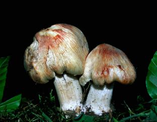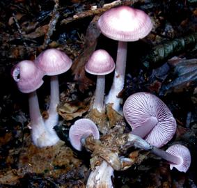 Schließlich sei noch auf einen muscarinhaltigen Pilz aufmerksam gemacht, den Rettich-Helmling (Mycena pura /-rosea/-pelianthina), der sehr häufig in unseren Wäldern wächst, wegen seiner relativ zierlichen Gestalt und seines Geruches nach Rettich aber kaum als Speisepilz in Betracht kommt.