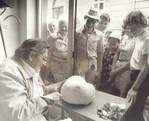 Stangl bei der Pilzberatung (mit Riesenbovist)